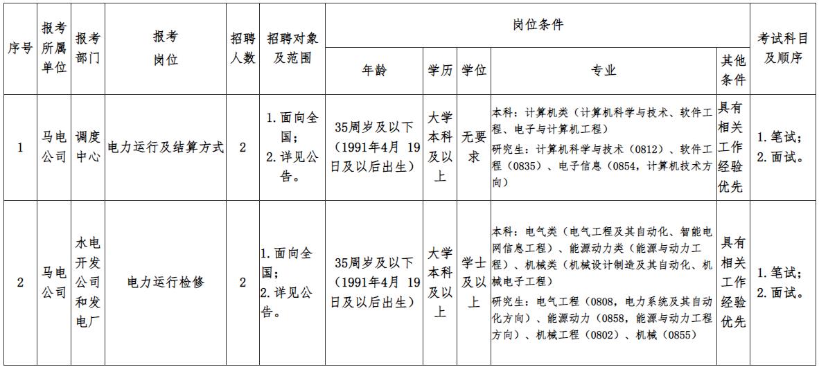 附件:四川马回电力股份有限公司2026年公开招聘工作人员岗位和条件要求一览表