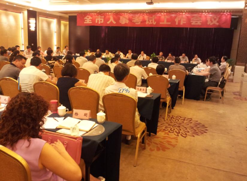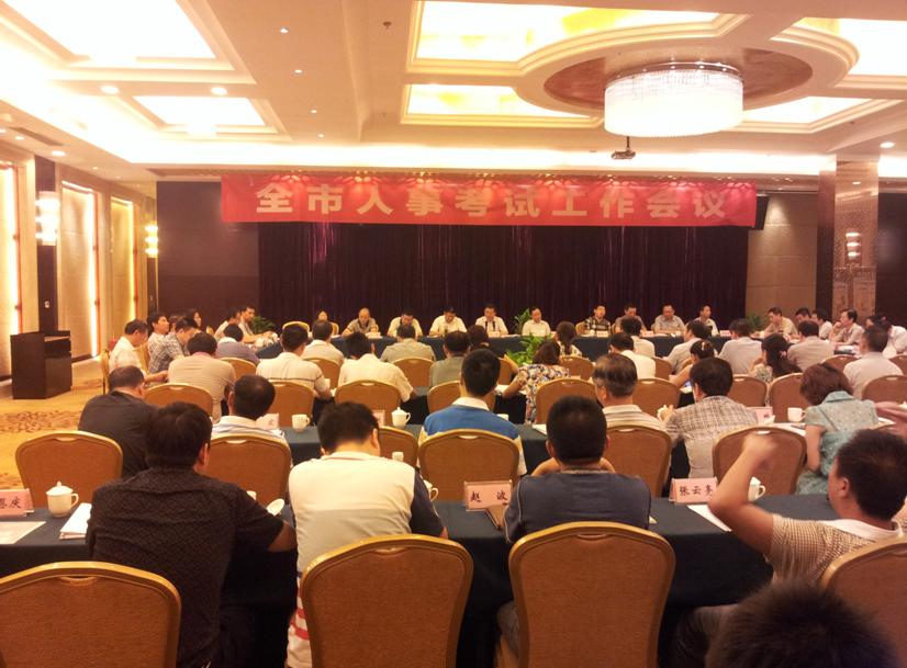 市委组织部副部长、市人社局党组书记、局长、市公务员局局长侯健同志分析了当前人事考试面临的严峻形势,安排部署了全市人事考试环境综合治理专项行动。侯建同志指出,近三年来,我市人事考试工作虽面临诸多风险,但力保了各项人事考试工作任务安全圆满。成绩属于过去,当前人事考试形势依然严峻:各类非法人事考试培训日益猖獗;高科技作弊的手段和方法不断推陈出新; “围考”、“买考”等新情况、新问题出现;用人单位对专业设置存在过窄、过细、过时;个别考务人员仍然没有严格按照考务程序规范操作;人事考试联动协调机制及人事考试队伍建设急需完善。侯健同志强调,下一步人事考试工作做到“三零”。一是各项考试任务“零事故”,考试更加安全;二是考试公平公正“零投诉”,考风考纪更加端正;三是考试管理服务“零差错”,队伍建设更完善。同时,要深刻领会、全面贯彻落实人社部、人社厅下发的关于组织开展人事考试环境综合治理专项行动通知的精神实质,准确把握专项行动的目标任务, 加快建立专项行动的联动机制,全力推进此次专项行动深入开展。