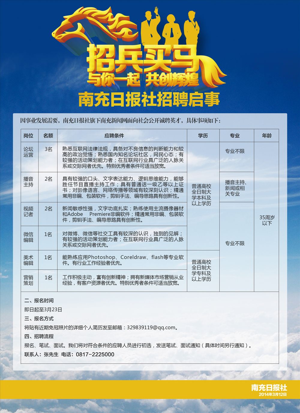 南充日报社2014年3月招聘启事