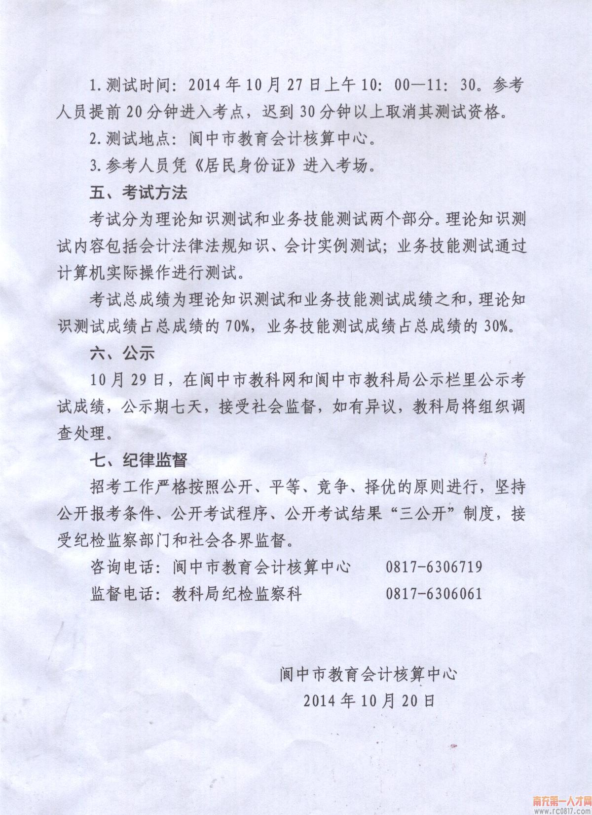 阆中市教育会计核算中心2014年公开招考核算会计的公告