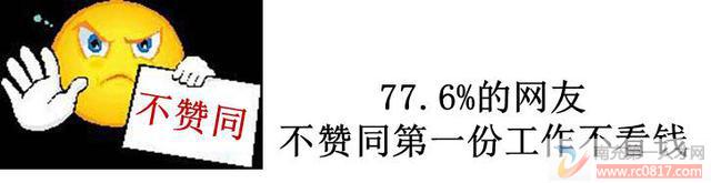 翻开很多文章总会看到这样的话:第一份工作要少考虑钱,要更多关注能否学到有用的经验,对这份工作是否有兴趣。然而现实中有人提出了反对意见。日前有位网友在前程无忧论坛上发帖“控诉”关于第一份工作不要看重钱的观点太坑人,得到了众多网友的支持与赞同。相关调查投票显示有77.6%的网友表示不赞同第一份工作不看钱的观点,持此反对意见的网友们认为:起薪越高的工作,工资增长的速度也越快。很多企业都习惯性地将年工资的调整幅度保持在5~10%或与通货膨胀持平。短期的工资差异可能不大,但长期积累后便会形成天壤之别??毕业时工资的些微差距在十年后就可能增加为难以弥合的差距。