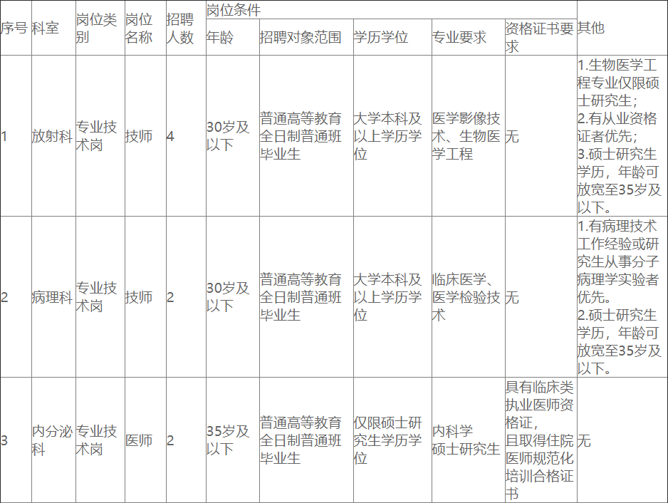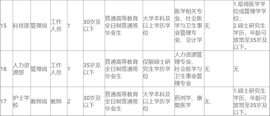 因工作需要,川北医学院附属医院特面向社会招聘编制外工作人员,岗位及条件如下:
